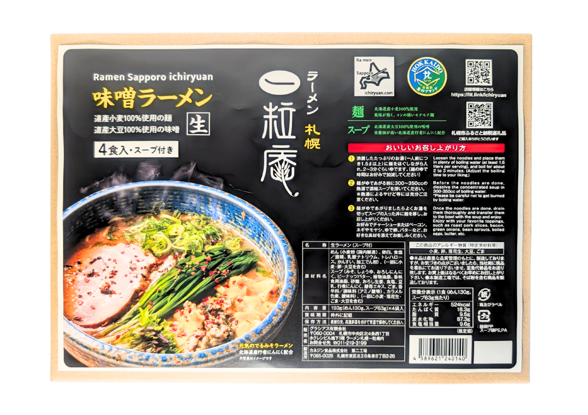 【ラーメン札幌一粒庵】【生麺/4食エコ包装】元気のでるみそラーメン|北海道産小麦|行者ニンニク|北のブランド認証