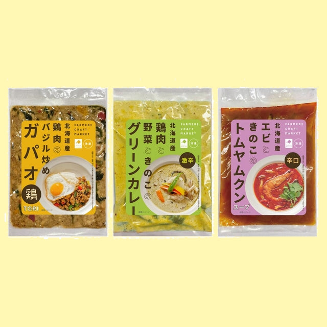 【FARMERS CRAFT MARKET】お試しセット(ガパオ鶏/グリーンカレー/トムヤムクン、合計3個入)