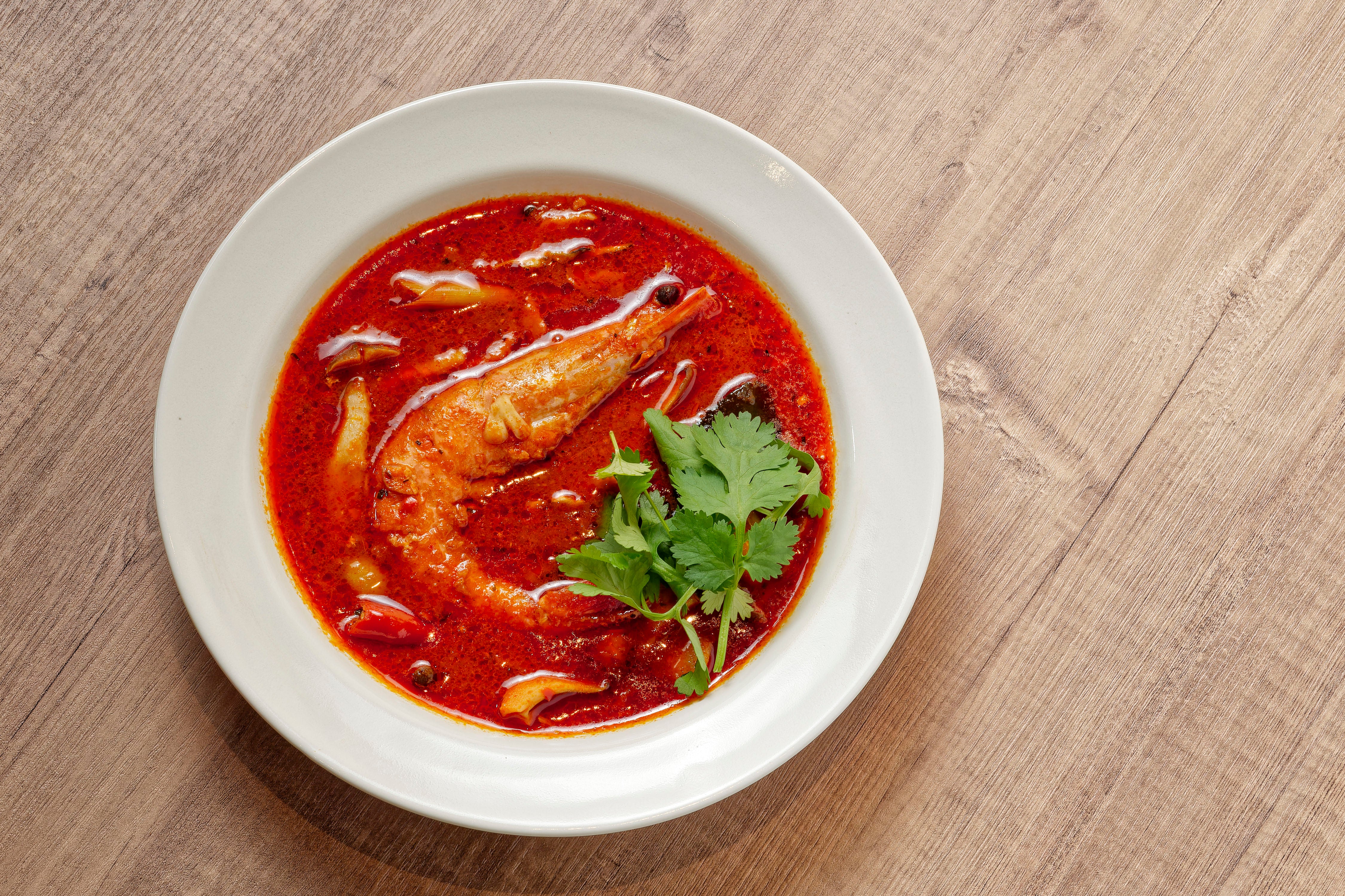 世界三大スープの一つと言われるタイの定番料理で、エビの旨味とスパイスの刺激、タマリンドーの酸味が絶妙に調和した一品です。