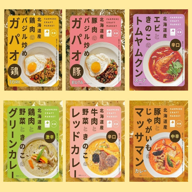 【FARMERS CRAFT MARKET】エスニック冷凍食品 バラエティーセット(ガパオ鶏/ガパオ豚/レッドカレー/グリーンカレー/マッサマンカレー/トムヤムクン 合計6個入)