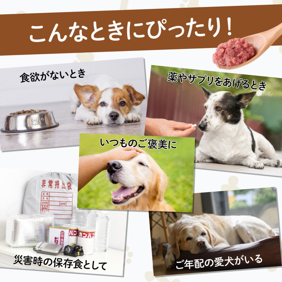 高齢になったわんちゃんやいつもの食事が飽きた子にとって気軽に食べられるペーストタイプのドックフードです。