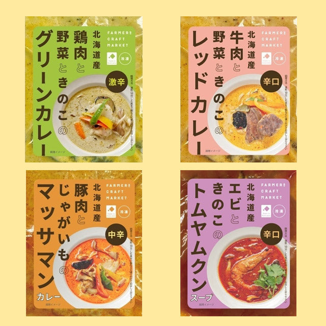 【FARMERS CRAFT MARKET】冷凍カレー・スープセット(レッドカレー/グリーンカレー/マッサマンカレー/トムヤムクン 合計4個入)