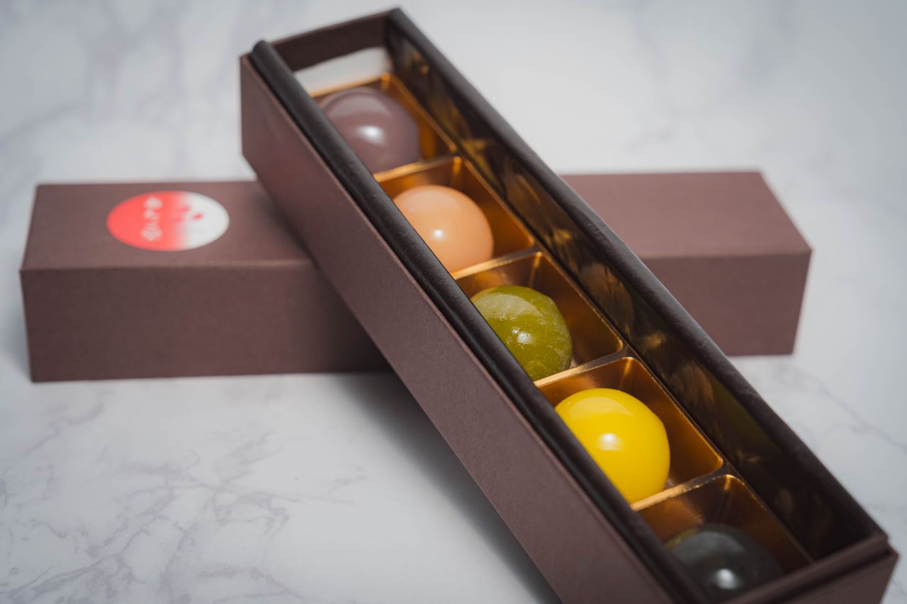 さまざまなフレーバーのあんこに薄い寒天をコーティングした シンプルなお菓子。