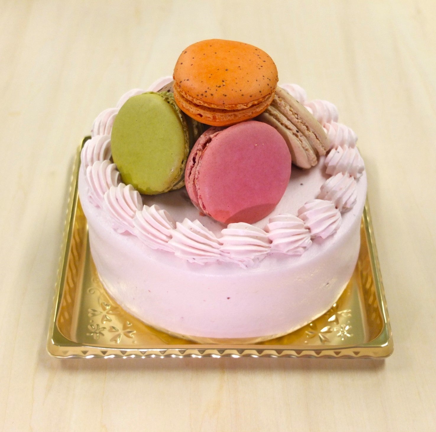 道産の卵や牛乳を使用した当店人気のマカロンデコレーションケーキ。
