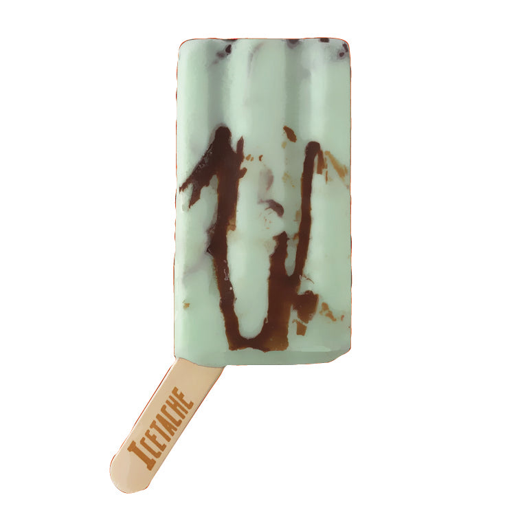 アイスキャンディーのスティックは斜めに取り付けられ、持ちやすさと見た目のインパクトを両立。また、スティックにヒゲ(Mustache)のマークが出たら「当たり」となり、全国のアイスタッシュディーラーさんでアイスと交換出来る。嬉しいサプライズも。