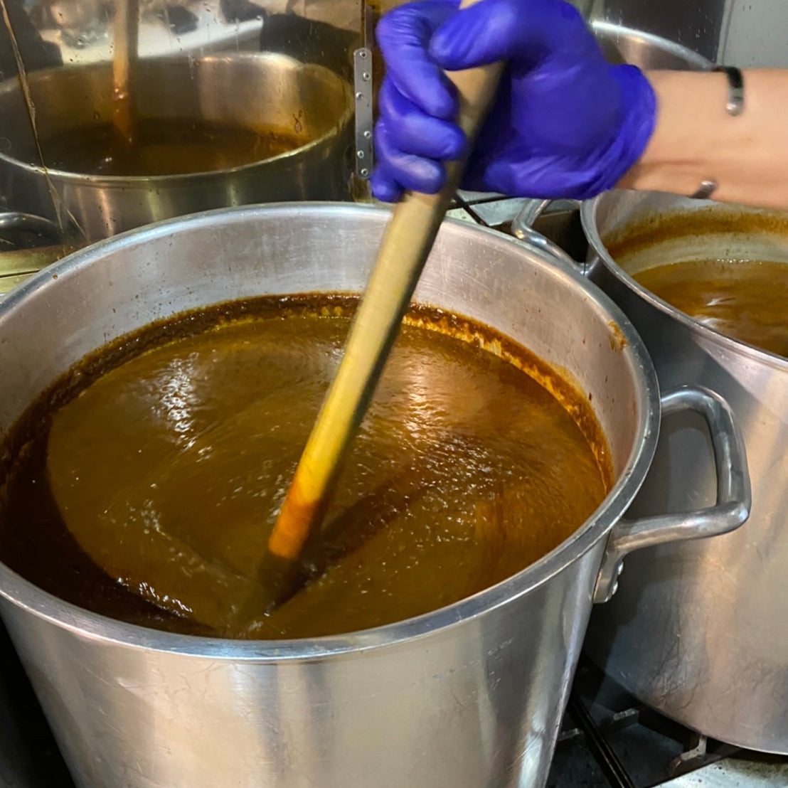 厚手のお鍋を使って弱火でゆっくり艶が出るように