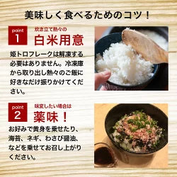 ご飯熱と口の中の熱で、フレークが溶け出し贅沢な食感が味わえます。ぜひ、お試しください。1食換算40g程度ですので、1袋でご飯5食分を賄えます。