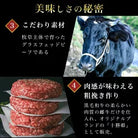 俵型の手こね仕上げで焼き上がりはホクホク、グラスフェッドビーフのヘルシーな肉質がより際立ちます。