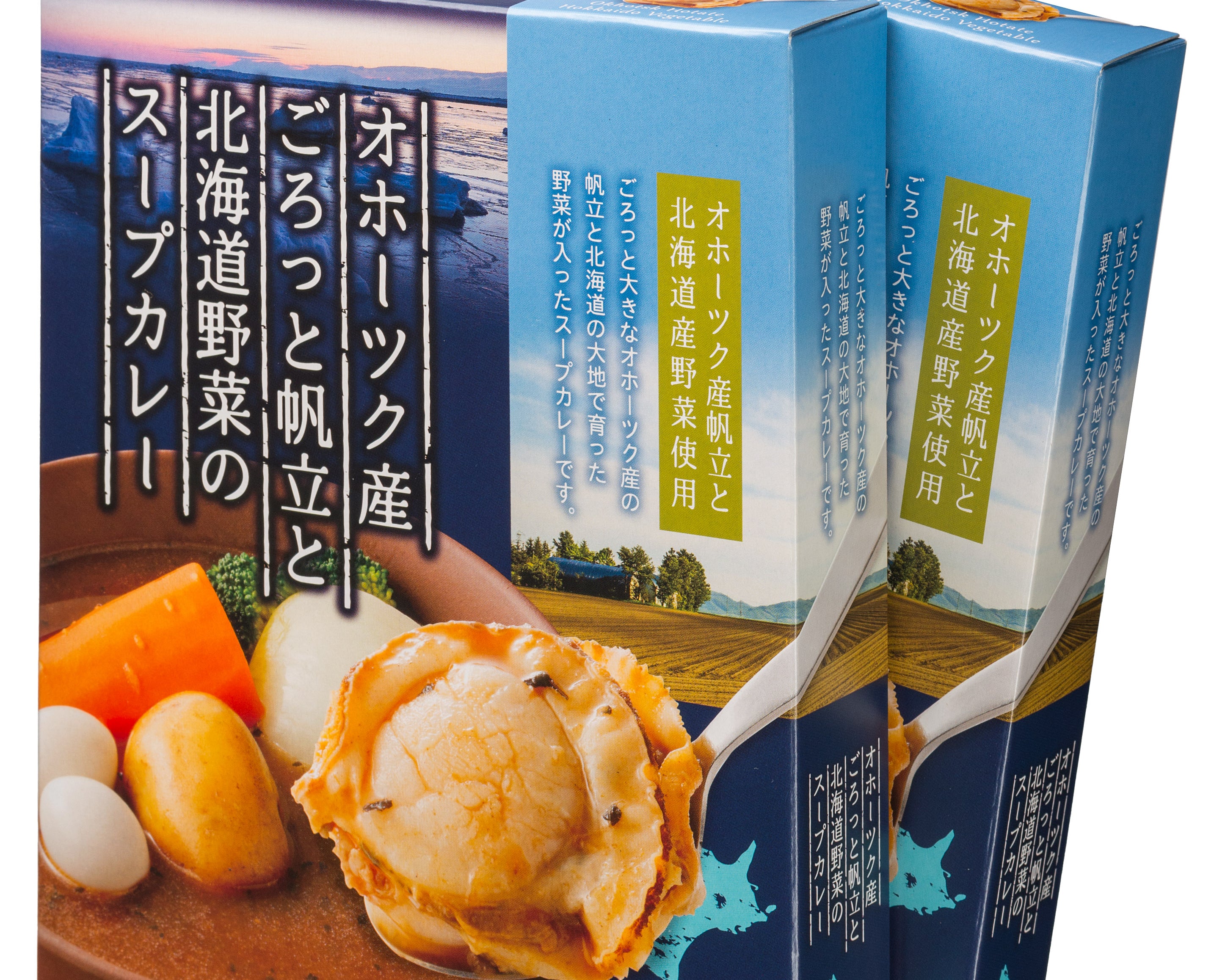 オホーツクの帆立が丸ごと1粒入った「オホーツク産ごろっと帆立と北海道野菜のスープカレー」が人気です。