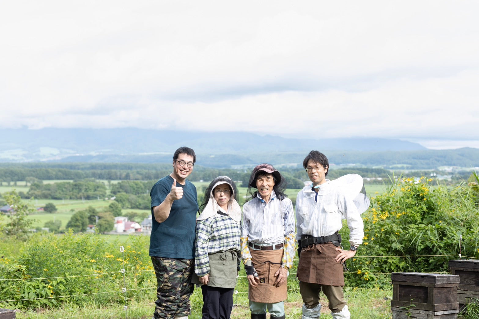※少群採蜜法とは、ミツバチの活動範囲に蜜を採りたい花の面積はかぎられているため、蜂箱の数をあえて少なく設置して狙っている花へミツバチに通ってもらい単花蜜の純度を上げる生産方法。