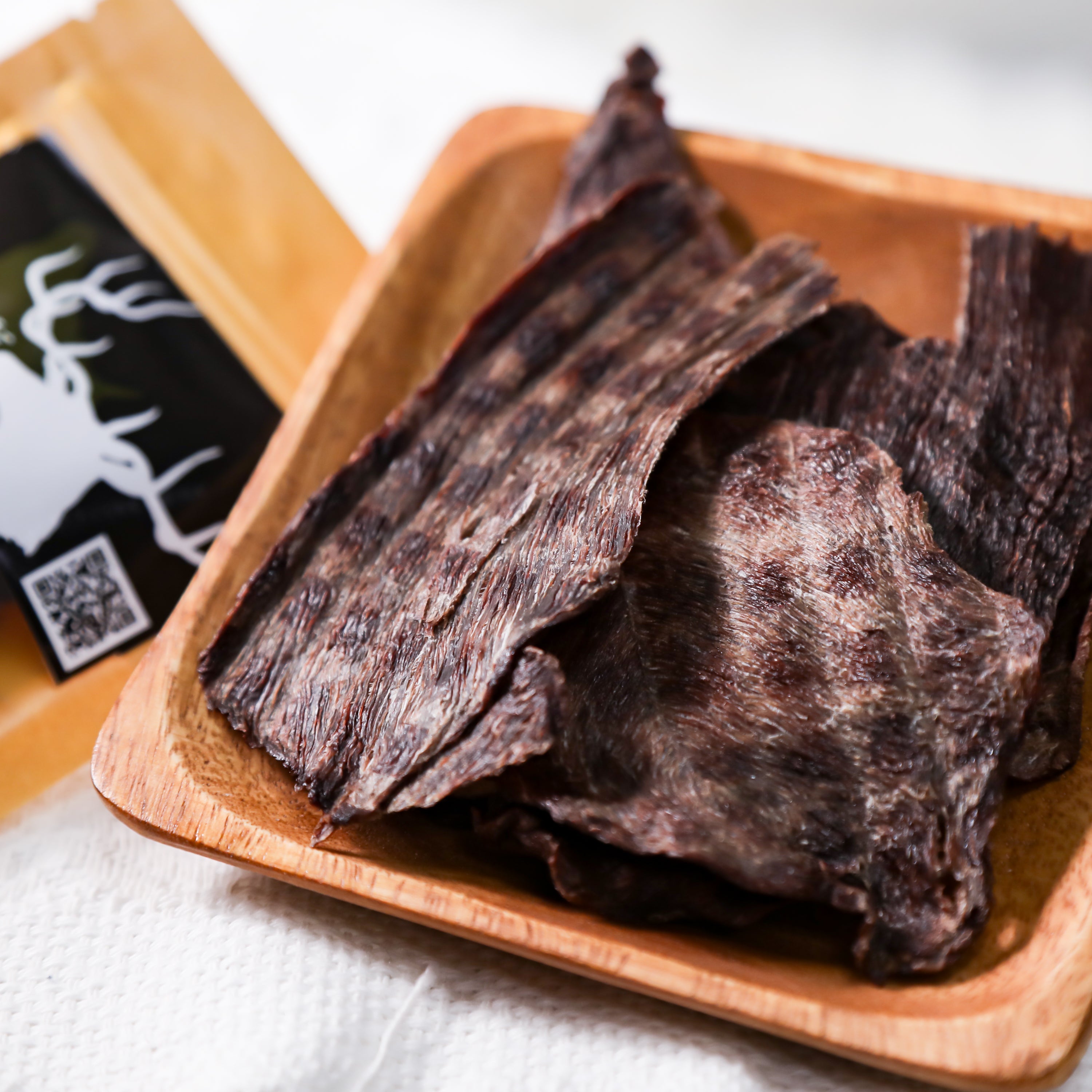 鹿肉は低カロリー、低コレステロールであり、ビタミンB2が豊富で、アミノ酸や亜鉛などミネラルのバランスも良く、健康的なお菓子です。